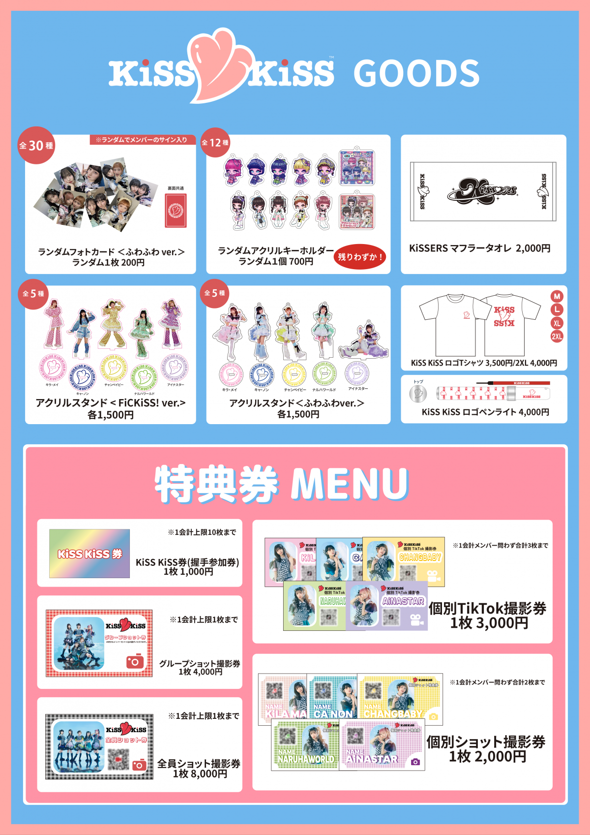 ⑧KiSS KiSS 全員ショット参加券 ¥8,000⑨KiSS KiSS グループTikTok撮影会参加券 ¥4,000
